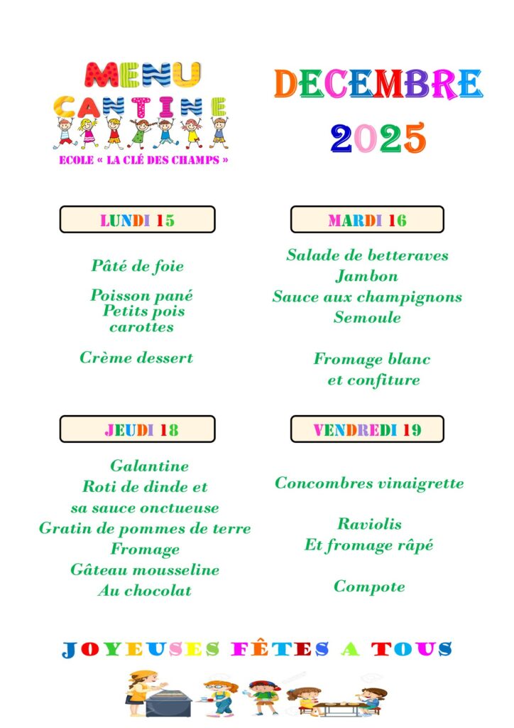 Mensuels Ste Marie des champs, Baons le comte, Ectot les baons et Maternelles de St Clair sur les monts : 4.25 € /repas