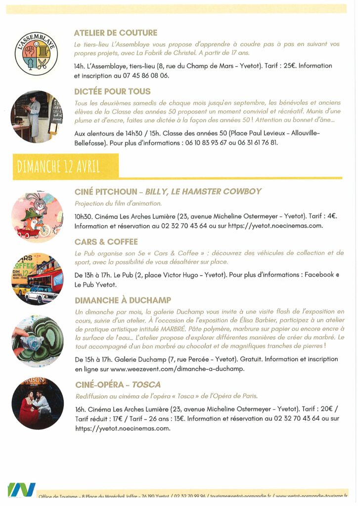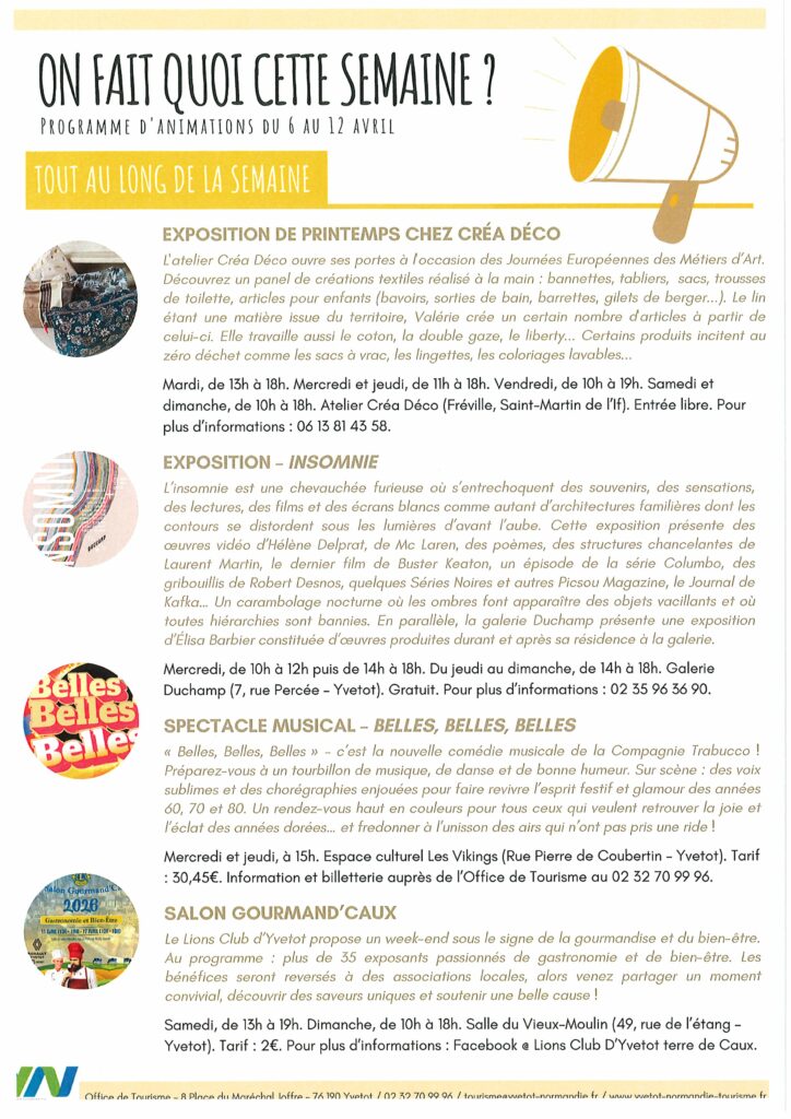 Programme d’animations du 06 au 12 Avril