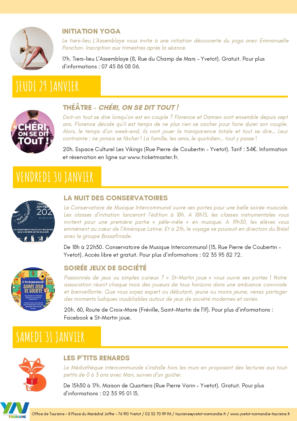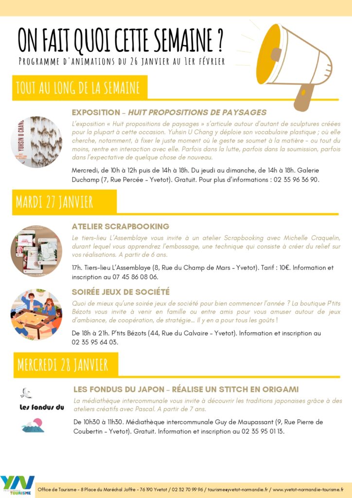 Programme d’animations du 26 janvier au 1er février